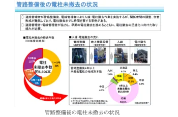 - 無電柱化工事 2026.03.06 | スタッフ 無電柱化の課題シリーズ その1~未撤去電柱がなんでこんなに多いの!?~ お元氣様です! 今朝の大阪は氷点下!の氣温でした!しびれました! 大雪になっている地域もあります。雪には十分ご注意ください! 雪と言えば、雪の多い地域では、電線に雪が付着して、その重みで電線が切れるといった被害が毎年のように報告さ…… 続きを見る - 無電柱化推進法・条例 2025.06.11 | スタッフ 「無電柱化無料相談窓口」が開設されました。 東京都は、地震や風水害時の電柱倒壊を防ぎ、災害時の円滑な対応につなげるため、今後は都道だけでなく、区市町村道や民間開発における無電柱化も積極的に進めることとしています。 その一環として、都市計画法の開発許可を受けて行う宅地の開発を対象…… 続きを見る - 国内外のまちづくり 2025.04.21 | スタッフ 電線地中化に遅れをとっている日本。これからの無電柱化推進計画と政策とは? 電柱・電線の無い街並み <東京都世田谷区 フォレストガーデン世田谷等々力> 事業主:住友林業株式会社様 電柱・電線のある街並み 電線・電柱の存在が当たり前になっている日本には、現在3300万本もの電柱が存在すると言われて…… 続きを見る - 無電柱化のメリット・デメリット 2024.12.15 | スタッフ なるほど納得!地震大国日本に電線の地中化は有効なのか?それとも…?? こんにちは!井上Sです!! 寒い日が続いております。清少納言は「冬はつとめて(早朝)」と書きましたが、私の12月の楽しみのひとつは夕日です。この時期、夕日でまわりが金色になるのを見るたびに、頭の中でスティービー・ワンダーが「STAY …… 続きを見る - 国内外のまちづくり 2024.11.30 | スタッフ 日本の景観法・景観制度についての現状と、運用の問題点について 日本の景観法・景観制度について現状は? 景観法は2004年に制定された法律で、良好な景観づくりを促進するために、景観計画の策定やその他の施策を総合的に講ずる法律となります。指定の地域や土地の美しさ、環境、文化的な価値を保護し、景観の保全と…… 続きを見る - 国内外のまちづくり 2024.11.10 | スタッフ 都道府県・市町村ごとに比較!日本の実際の無電柱化率 日本の都道府県・市町村の無電柱化率 都道府県別 令和3年度末の日本における国土交通省による調査で、都道府県別の無電柱化率は以下のように結果が出ています。 最も無電柱化率が高い東京都であっても、無電柱化されている道路はわずか5%台となっ…… 続きを見る - 無電柱化ニュース 2022.02.18 | スタッフ 緊急輸送道路における電線類地中化の対策とは こんにちは!夏目です。 今回のブログでは市街地等の緊急輸送道路における無電柱化対策について説明します。 電線類地中化対策ができたきっかけ 2019年に台風15号(房総半島台風)が猛威を振るい、その威力は既往最大風速を更新する局地的…… 続きを見る - 国内外のまちづくり 2022.02.02 | スタッフ 知ってますか?無電柱化×デジタルサイネージ こんにちは!今年はインスタグラムの更新も毎週している柳川です!興味のある方は是非一度ご覧になってみてください!(@mudentyu_georhizome) 今回のブログは最近話題の「デジタルサイネージ」についてお伝えしていきます。実は…… 続きを見る - 無電柱化ニュース 2022.01.19 | スタッフ 市街地開発事業ご担当者様へ朗報!工事費負担金の支払いが見直されました! こんにちは!2022年になりました!柳川です! あけましておめでとうございます!本年もブログで無電柱化について発信していこうと思いますので、宜しくお願い致します。 この度、経産省資源エネルギー庁から無電柱化に関する新たな情報が発せら…… 続きを見る