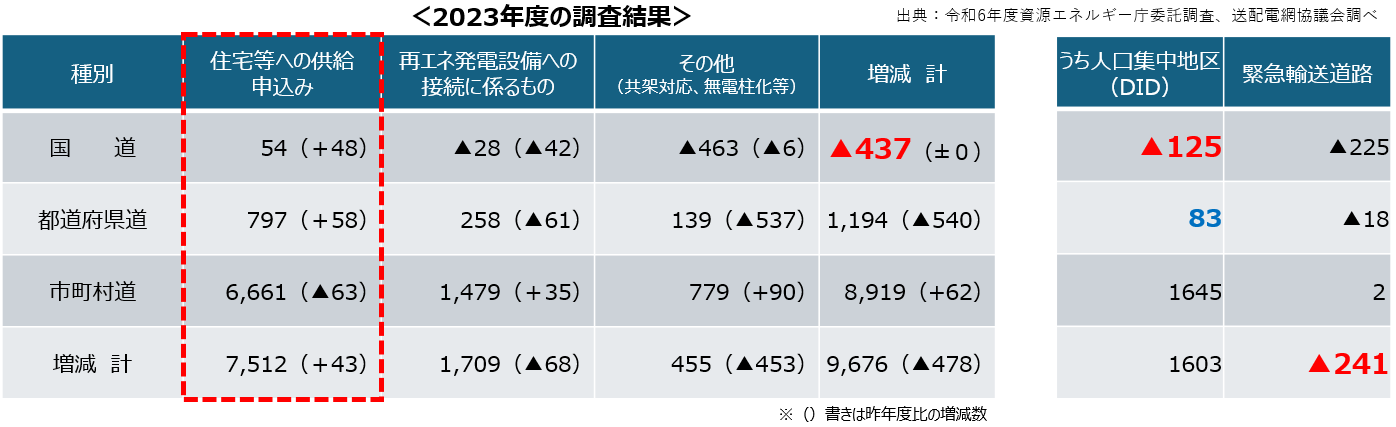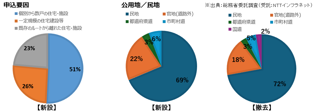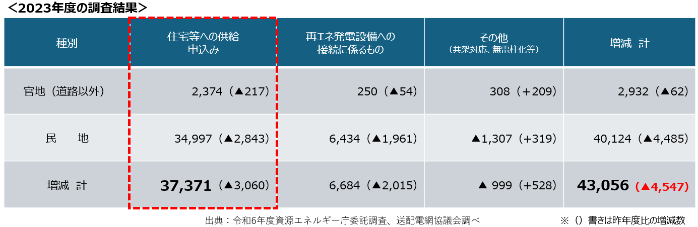 新設電柱の内、約 5 割が個別ないし数戸の住宅・施設への供給を目的とするもの。