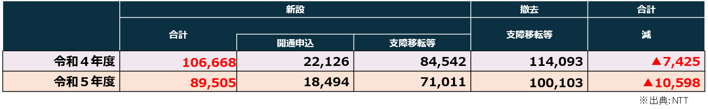・新設電柱は・令和4年度と比較し、約1万7千本減少(▲16%)
