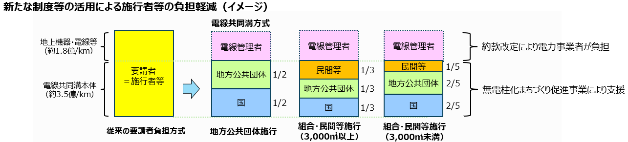 ○施行者の負担の軽減により、市街地開発事業等の無電柱化を進めていく
